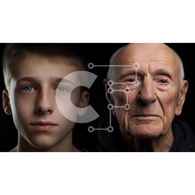 Υπάρχει δυνατότητα προσωποποίησης με δική σας φωτογραφία και προσαρμογής διαστάσεων κατόπιν παραγγελίας. Το συγεκεριμενο puzzle παρουσιαζει Αυτή η εικόνα παρουσιάζει δύο ανθρώπινα πρόσωπα, το ένα ενός νεαρού αγοριού και το άλλο ενός ηλικιωμένου άνδρα, το καθένα εμφανισμένα δίπλα-δίπλα σε σκούρο φόντο. Το αγόρι έχει ανοιχτά καστανά μαλλιά και εντυπωσιακά μπλε μάτια, που μεταδίδουν μια αίσθηση νεότητας και αθωότητας