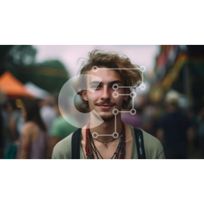 Υπάρχει δυνατότητα προσωποποίησης με δική σας φωτογραφία και προσαρμογής διαστάσεων κατόπιν παραγγελίας. Το συγεκεριμενο puzzle παρουσιαζει Αυτή η εικόνα δείχνει έναν νεαρό άνδρα με σγουρά μαλλιά και γένια να απολαμβάνει ένα μουσικό φεστιβάλ. Στέκεται μπροστά σε ένα πλήθος ανθρώπων, φορώντας ένα μαύρο πουκάμισο και μια ασημένια αλυσίδα στο λαιμό του. Το φόντο είναι γεμάτο με ανθρώπους διαφορετικών ηλικιών και εθνο