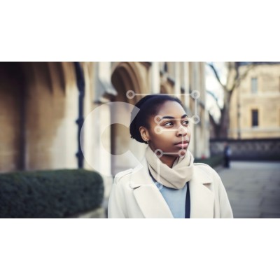 Υπάρχει δυνατότητα προσωποποίησης με δική σας φωτογραφία και προσαρμογής διαστάσεων κατόπιν παραγγελίας. Το συγεκεριμενο puzzle παρουσιαζει Αυτή η εικόνα παρουσιάζει μια νεαρή γυναίκα να στέκεται σε ένα πεζοδρόμιο μπροστά από ένα πέτρινο κτίριο με καμάρες και έναν πύργο ρολογιού. Η γυναίκα φοράει λευκό παλτό και κασκόλ και κοιτάζει μακριά. Η εικόνα αποτυπώνει μια στιγμή περισυλλογής, ομορφιάς και γαλήνης. Ένα μον
