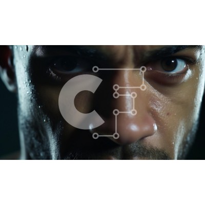 Υπάρχει δυνατότητα προσωποποίησης με δική σας φωτογραφία και προσαρμογής διαστάσεων κατόπιν παραγγελίας. Το συγεκεριμενο puzzle παρουσιαζει Αυτή η εικόνα καταγράφει ένα κοντινό πλάνο του προσώπου ενός άνδρα, δείχνοντας έντονα συναισθήματα και αποφασιστικότητα. Το δέρμα του γυαλίζει, πιθανώς από τον ιδρώτα, που αναδεικνύει τα περιγράμματα και τις υφές του προσώπου του. Ο φωτισμός δημιουργεί δραματικές σκιές, τονίζο