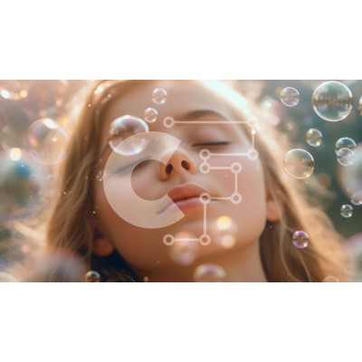Υπάρχει δυνατότητα προσωποποίησης με δική σας φωτογραφία και προσαρμογής διαστάσεων κατόπιν παραγγελίας. Το συγεκεριμενο puzzle παρουσιαζει Αυτή η εικόνα δείχνει μια νεαρή κοπέλα με μακριά, κυματιστά μαλλιά που φορά ένα γαλάζιο sundress και γυαλιά ηλίου πάνω από το κεφάλι της. Τα μάτια της είναι κλειστά και έχει μια γαλήνια έκφραση στο πρόσωπό της. Γύρω της αιωρούνται φυσαλίδες, δημιουργώντας μια ονειρική και αιθέ