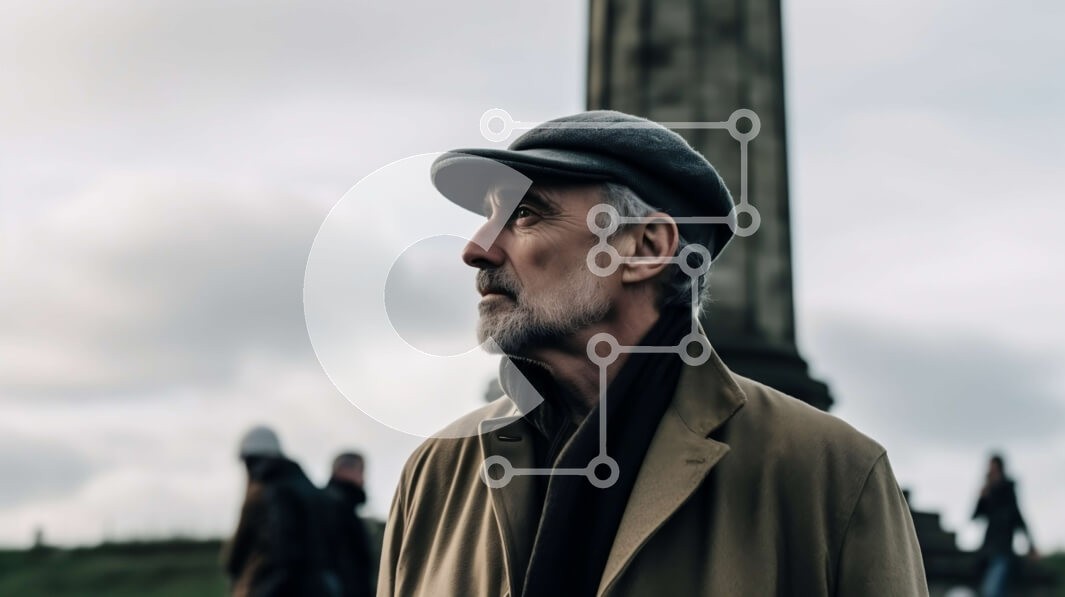 Υπάρχει δυνατότητα προσωποποίησης με δική σας φωτογραφία και προσαρμογής διαστάσεων κατόπιν παραγγελίας. Το συγεκεριμενο puzzle παρουσιαζει Αυτή η εικόνα δείχνει έναν ηλικιωμένο άνδρα να στέκεται σε ένα λόφο, να φορά μια καμπαρντίνα και καπέλο και να κοιτάζει μια πόλη από κάτω του. Ο ουρανός είναι συννεφιασμένος και φαίνεται να είναι μια δροσερή μέρα. Ο άντρας έχει μια στοχαστική έκφραση στο πρόσωπό του. Ένα μονα