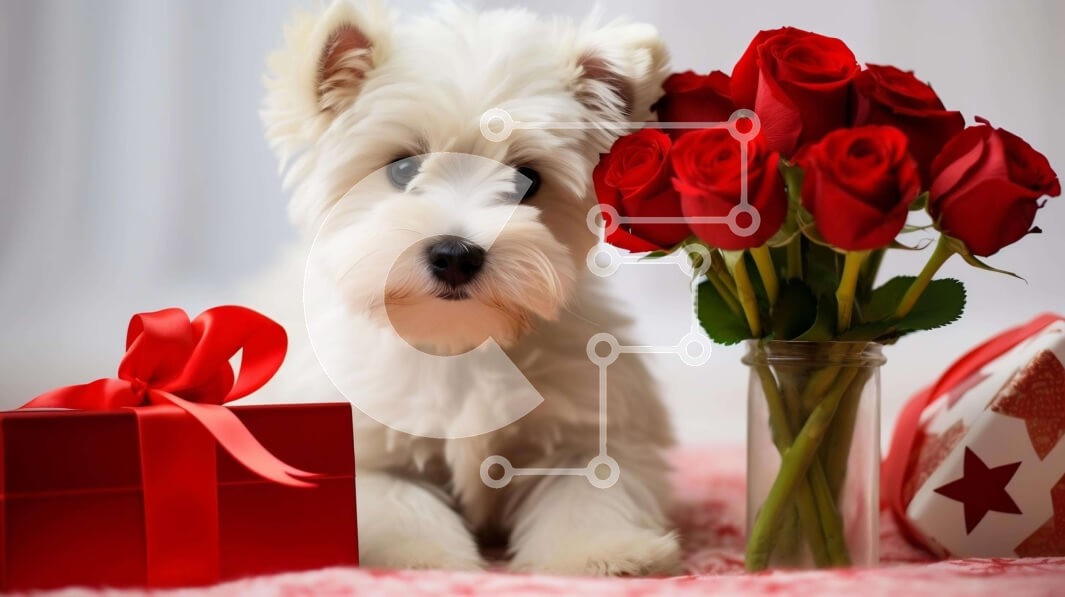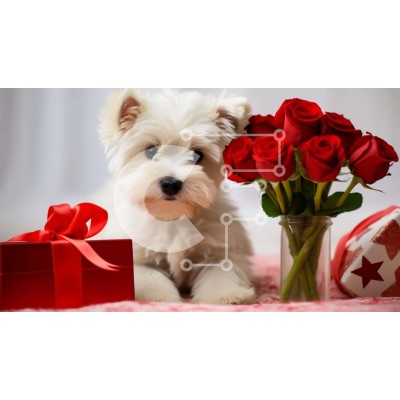Υπάρχει δυνατότητα προσωποποίησης με δική σας φωτογραφία και προσαρμογής διαστάσεων κατόπιν παραγγελίας. Το συγεκεριμενο puzzle παρουσιαζει Αυτή η εικόνα παρουσιάζει ένα μικρό λευκό σκυλί που κάθεται δίπλα σε κόκκινα τριαντάφυλλα και ένα ανοιχτό κουτί δώρου. Ο σκύλος φαίνεται να απολαμβάνει την παρουσία των λουλουδιών, κάτι που μπορεί να δείχνει ότι γιορτάζει την ημέρα του Αγίου Βαλεντίνου με τον ιδιοκτήτη του. Επ