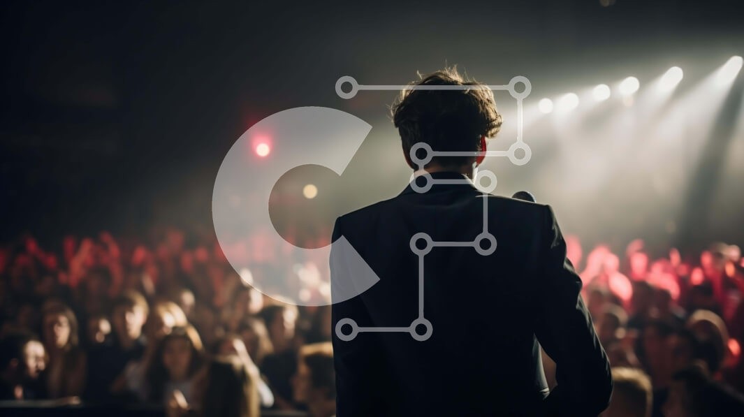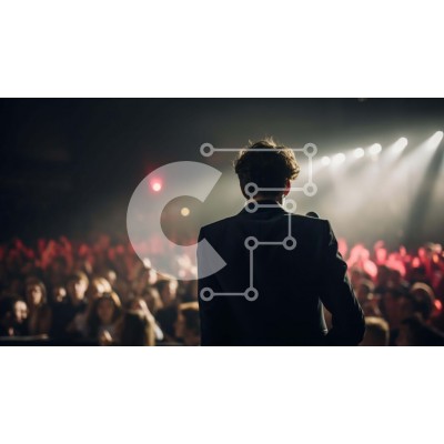 Υπάρχει δυνατότητα προσωποποίησης με δική σας φωτογραφία και προσαρμογής διαστάσεων κατόπιν παραγγελίας. Το συγεκεριμενο puzzle παρουσιαζει Αυτή η εικόνα παρουσιάζει έναν άνδρα να στέκεται μπροστά σε ένα κοινό, στραμμένο μακριά από τη σκηνή. Ο άνδρας φαίνεται να μιλάει, δηλώνοντας ότι παρουσιάζει ή παίζει σε μια εκδήλωση. Το κοινό φαίνεται στο βάθος, υπονοώντας ότι τον παρακολουθεί και τον ακούει. Η δυναμική αλληλ