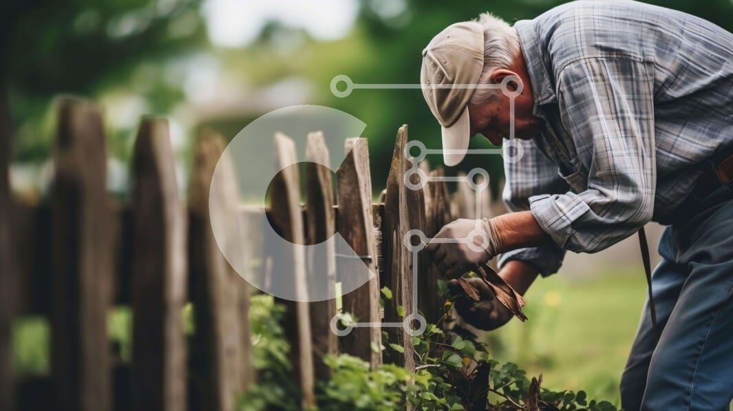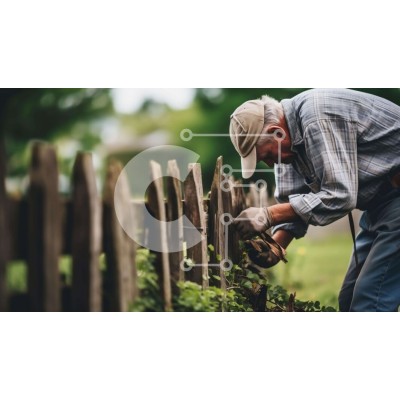 Υπάρχει δυνατότητα προσωποποίησης με δική σας φωτογραφία και προσαρμογής διαστάσεων κατόπιν παραγγελίας. Το συγεκεριμενο puzzle παρουσιαζει Αυτή η εικόνα δείχνει έναν ηλικιωμένο άνδρα που ακουμπάει σε έναν ξύλινο φράχτη ενώ ασχολείται με δραστηριότητες κηπουρικής. Χρησιμοποιεί εργαλεία κηπουρικής για να κόψει το γρασίδι και τα φυτά γύρω από τον φράχτη, υποδεικνύοντας τη συμμετοχή του σε εργασίες στον κήπο ή στον κ
