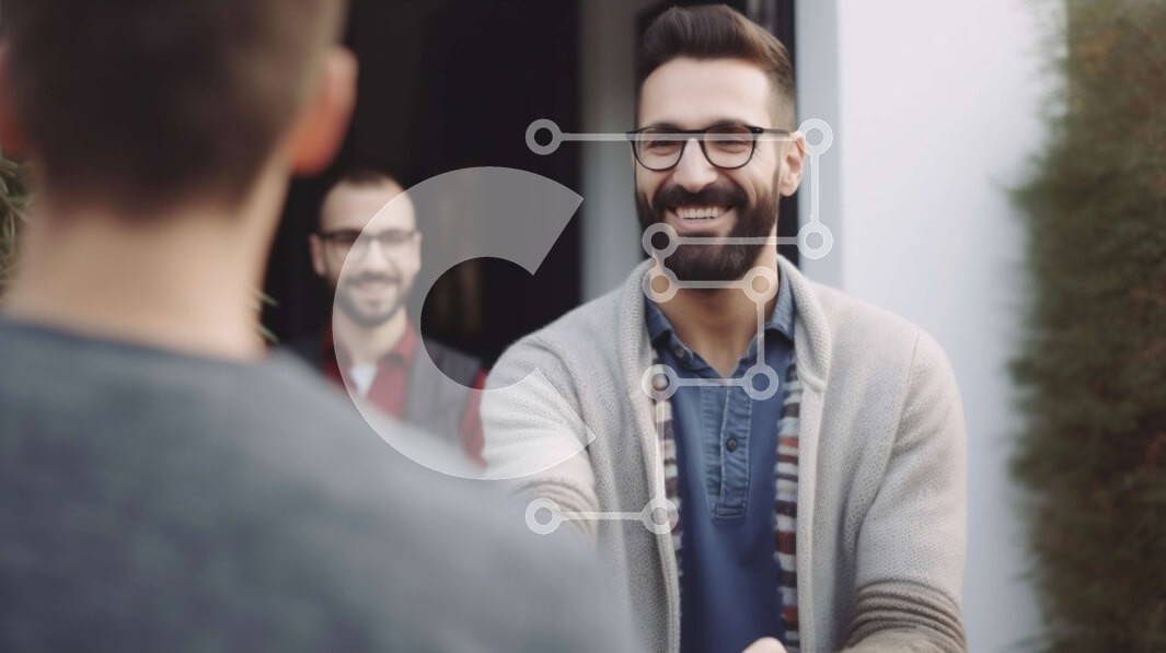 Υπάρχει δυνατότητα προσωποποίησης με δική σας φωτογραφία και προσαρμογής διαστάσεων κατόπιν παραγγελίας. Το συγεκεριμενο puzzle παρουσιαζει Αυτή η φωτογραφία δείχνει μια ομάδα ανδρών που στέκονται έξω από ένα σπίτι. Ένας άντρας δίνει τα χέρια με έναν άλλο, υποδηλώνοντας μια σημαντική στιγμή ή συμφωνία. Οι άντρες είναι ντυμένοι casual και δείχνουν να βρίσκονται σε μια φιλική και χαλαρή ατμόσφαιρα. Ένα μοναδικό puz