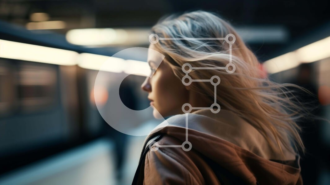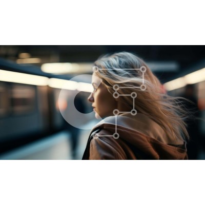 Υπάρχει δυνατότητα προσωποποίησης με δική σας φωτογραφία και προσαρμογής διαστάσεων κατόπιν παραγγελίας. Το συγεκεριμενο puzzle παρουσιαζει Αυτή η εικόνα απεικονίζει μια γυναίκα να στέκεται σε έναν σταθμό του μετρό, με τα μαλλιά της να φουσκώνουν γύρω από το πρόσωπό της. Φαίνεται να κοιτάζει κάτι πίσω της, υποδηλώνοντας περισυλλογή ή προσμονή. Η σκηνή είναι γεμάτη με πολλούς ανθρώπους που περπατούν, υποδεικνύοντας