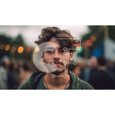 Υπάρχει δυνατότητα προσωποποίησης με δική σας φωτογραφία και προσαρμογής διαστάσεων κατόπιν παραγγελίας. Το συγεκεριμενο puzzle παρουσιαζει Αυτή η εικόνα παρουσιάζει έναν νεαρό άνδρα με σγουρά μαλλιά και ένα πράσινο σακάκι να στέκεται μπροστά σε ένα πλήθος κόσμου σε ένα μουσικό φεστιβάλ. Ο άνδρας έχει μια σοβαρή έκφραση στο πρόσωπό του και κοιτάζει κατευθείαν την κάμερα, ενώ το φόντο γεμίζει με πολύχρωμα φώτα που