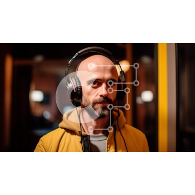 Υπάρχει δυνατότητα προσωποποίησης με δική σας φωτογραφία και προσαρμογής διαστάσεων κατόπιν παραγγελίας. Το συγεκεριμενο puzzle παρουσιαζει Αυτή η εικόνα παρουσιάζει έναν φαλακρό άνδρα που φορά ένα κίτρινο σακάκι και ακουστικά. Έχει μια σοβαρή έκφραση στο πρόσωπό του και κοιτάζει κατευθείαν την κάμερα. Το φόντο είναι σκοτεινό, γεγονός που βοηθά στην εστίαση της προσοχής στο θέμα. Ένα μοναδικό puzzle που συνδυάζει