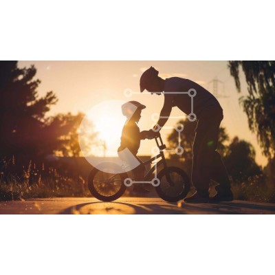 Υπάρχει δυνατότητα προσωποποίησης με δική σας φωτογραφία και προσαρμογής διαστάσεων κατόπιν παραγγελίας. Το συγεκεριμενο puzzle παρουσιαζει Η εικόνα δείχνει πατέρα και γιο να κάνουν ποδήλατα μαζί στο ηλιοβασίλεμα. Η σιλουέτα του πατέρα είναι ορατή στο πρώτο πλάνο, υποδηλώνοντας ότι μπορεί να βοηθά το παιδί. Η σκηνή υποδηλώνει μια στιγμή δέσιμου και πιθανώς ο γιος να μάθει να οδηγεί από τον πατέρα του. Ένα μοναδικ