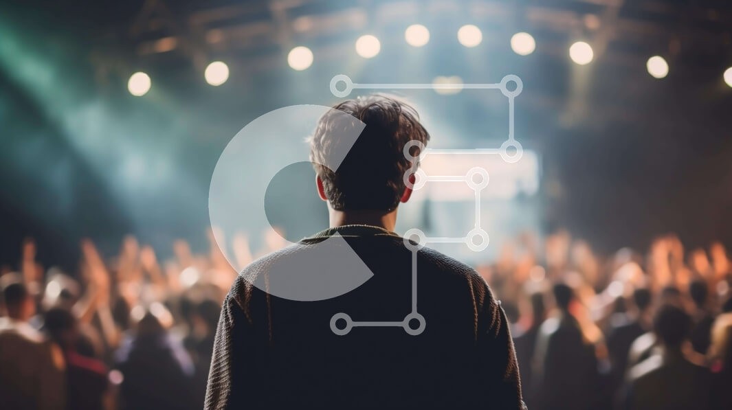 Υπάρχει δυνατότητα προσωποποίησης με δική σας φωτογραφία και προσαρμογής διαστάσεων κατόπιν παραγγελίας. Το συγεκεριμενο puzzle παρουσιαζει Αυτή η εικόνα δείχνει μια σιλουέτα ενός άνδρα που στέκεται μπροστά σε ένα κοινό, με την πλάτη του στραμμένη προς τη σκηνή. Το άτομο φωτίζεται από τα έντονα φώτα που προέρχονται από τη σκηνή, δημιουργώντας μια εντυπωσιακή αντίθεση. Η θέση της πλάτης του ατόμου μπορεί να διαφέρε