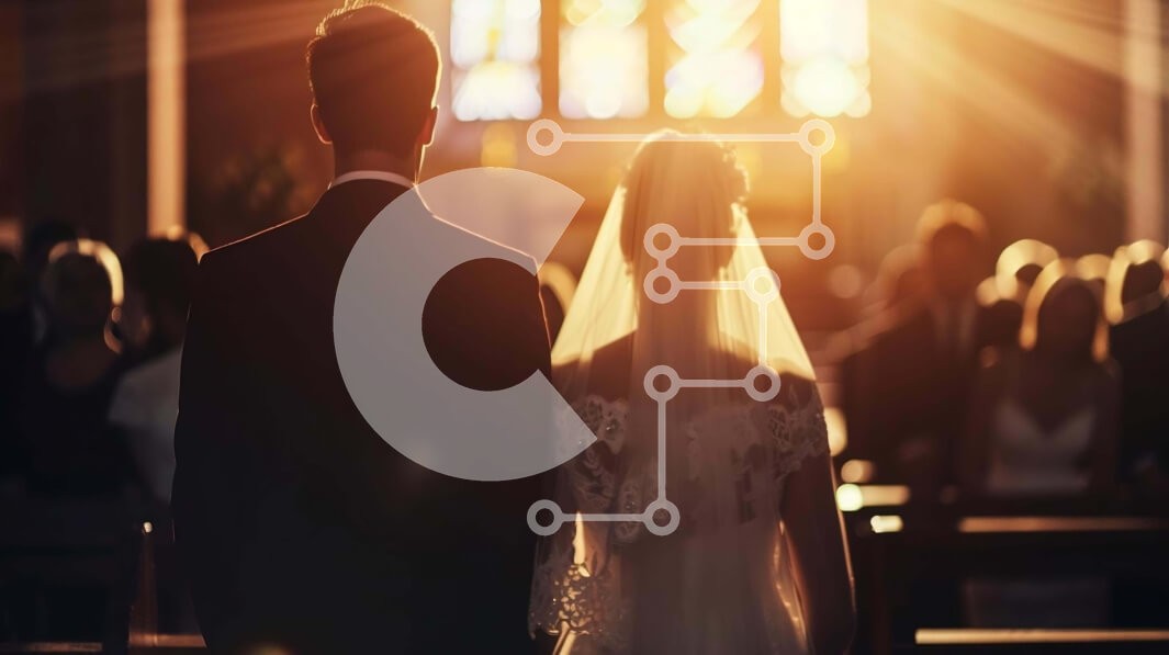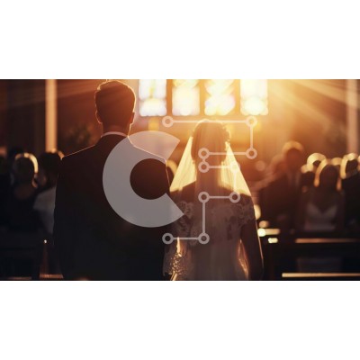 Υπάρχει δυνατότητα προσωποποίησης με δική σας φωτογραφία και προσαρμογής διαστάσεων κατόπιν παραγγελίας. Το συγεκεριμενο puzzle παρουσιαζει Η εικόνα δείχνει ένα νεόνυμφο ζευγάρι να περπατά στο διάδρομο μπροστά από μια φωτισμένη εκκλησία. Η νύφη και ο γαμπρός είναι ντυμένοι με λευκά νυφικά, με τις πλάτες τους να κοιτάζουν προς τον ηλιόλουστο ουρανό. Είναι πιθανό να γιορτάζουν το γάμο τους σε αυτή την εκκλησία, η οπ