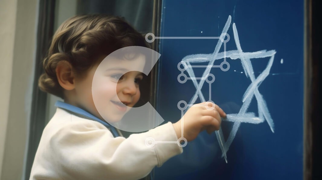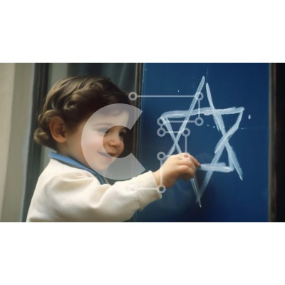 Υπάρχει δυνατότητα προσωποποίησης με δική σας φωτογραφία και προσαρμογής διαστάσεων κατόπιν παραγγελίας. Το συγεκεριμενο puzzle παρουσιαζει Αυτή η εικόνα παρουσιάζει ένα νεαρό αγόρι που στέκεται κοντά σε μια μπλε πόρτα, βυθισμένο στο σχέδιο ενός αστεριού του Δαβίδ με λευκή κιμωλία. Η δημιουργική δραστηριότητα του αγοριού μπορεί να είναι για διασκέδαση ή ως μέρος της θρησκευτικής του πρακτικής. Η εικόνα αποτυπώνει