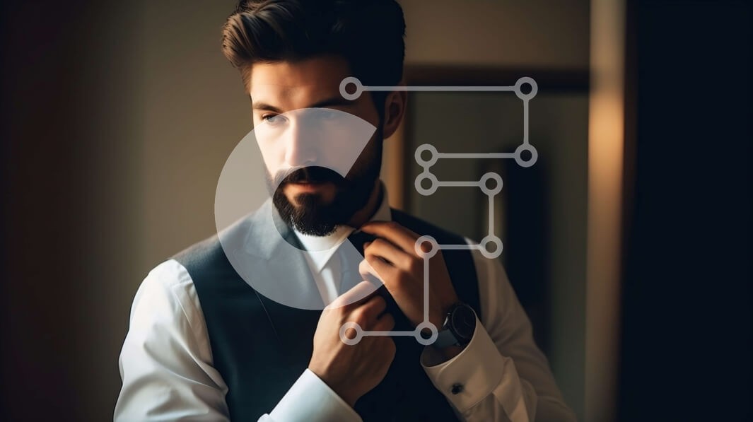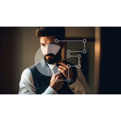 Υπάρχει δυνατότητα προσωποποίησης με δική σας φωτογραφία και προσαρμογής διαστάσεων κατόπιν παραγγελίας. Το συγεκεριμενο puzzle παρουσιαζει Αυτή η εικόνα απεικονίζει έναν άνδρα με μαύρο κοστούμι και λευκό πουκάμισο, που στέκεται μπροστά από έναν καθρέφτη ενώ προσαρμόζει τη μαύρη γραβάτα του. Έχει μούσι και κοιτάζει τον εαυτό του στον καθρέφτη. Η εικόνα αποτυπώνει την ουσία του επαγγελματισμού και της αυτοπεποίθηση