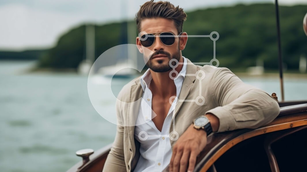 Υπάρχει δυνατότητα προσωποποίησης με δική σας φωτογραφία και προσαρμογής διαστάσεων κατόπιν παραγγελίας. Το συγεκεριμενο puzzle παρουσιαζει Αυτή η εικόνα παρουσιάζει έναν άνδρα που φοράει γυαλιά ηλίου και ένα μπεζ σακάκι, κάθεται στο πίσω μέρος μιας βάρκας. Κοιτάζει κατευθείαν την κάμερα με χαλαρή έκφραση, υπονοώντας ότι απολαμβάνει την ώρα του στο νερό. Το φόντο είναι θολό, αλλά υπονοεί την πιθανότητα γαλάζιων νε