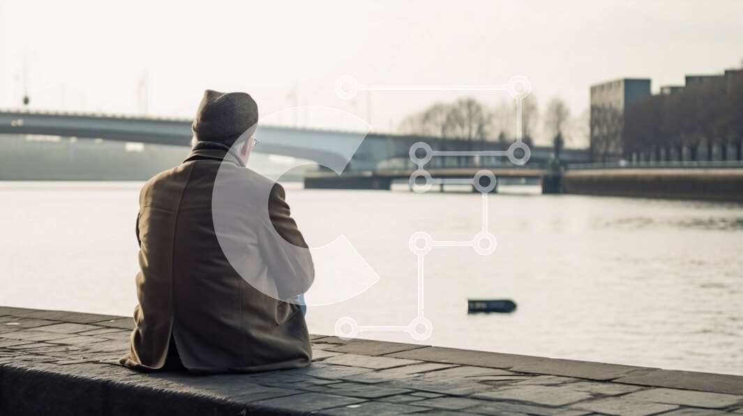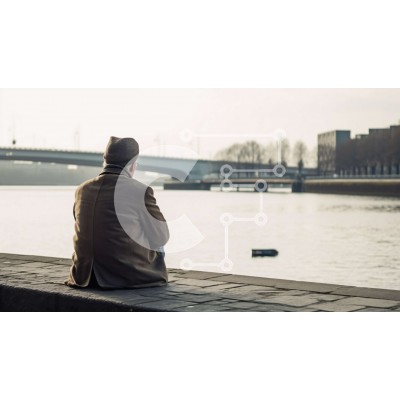 Υπάρχει δυνατότητα προσωποποίησης με δική σας φωτογραφία και προσαρμογής διαστάσεων κατόπιν παραγγελίας. Το συγεκεριμενο puzzle παρουσιαζει Αυτή η εικόνα παρουσιάζει έναν άνδρα με παλτό και καπέλο που κάθεται σε έναν τσιμεντένιο τοίχο με θέα σε ένα σώμα νερού. Στο βάθος διακρίνεται μια γέφυρα. Η συνολική ατμόσφαιρα της εικόνας είναι γαλήνια και γαλήνια. Ένα μοναδικό puzzle που συνδυάζει ποιότητα, αισθητική και εμ
