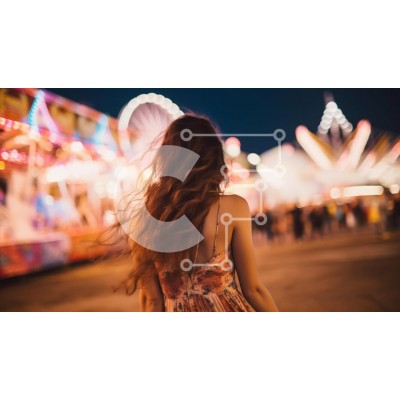 Υπάρχει δυνατότητα προσωποποίησης με δική σας φωτογραφία και προσαρμογής διαστάσεων κατόπιν παραγγελίας. Το συγεκεριμενο puzzle παρουσιαζει Η εικόνα απαθανατίζει μια νεαρή γυναίκα με μακριά, γεμάτα μαλλιά, να στέκεται με την πλάτη στην κάμερα. Φοράει ένα φλοράλ φόρεμα και είναι τοποθετημένη μπροστά σε μια ζωντανή καρναβαλική σκηνή που φωτίζεται από πολύχρωμα φώτα. Η ατμόσφαιρα είναι γιορτινή και ζωντανή, με θολή κ