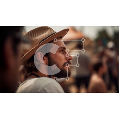 Υπάρχει δυνατότητα προσωποποίησης με δική σας φωτογραφία και προσαρμογής διαστάσεων κατόπιν παραγγελίας. Το συγεκεριμενο puzzle παρουσιαζει Αυτή η στοκ φωτογραφία απαθανατίζει έναν άνδρα να στέκεται σε ένα πλήθος ενώ φοράει ένα ψάθινο καπέλο και έχει γένια. Ο άντρας κοιτάζει μακριά και φαίνεται να είναι βαθιά σε σκέψεις. Η εικόνα είναι κατάλληλη για να αναπαραστήσει έννοιες όπως η κοινότητα, η διαφορετικότητα, η α