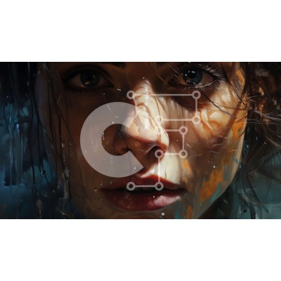 Υπάρχει δυνατότητα προσωποποίησης με δική σας φωτογραφία και προσαρμογής διαστάσεων κατόπιν παραγγελίας. Το συγεκεριμενο puzzle παρουσιαζει Αυτή η εικόνα είναι ένα πορτρέτο μιας γυναίκας με μακριά, σγουρά καστανά μαλλιά. Φοράει ένα μαύρο δερμάτινο μπουφάν και ένα λευκό πουκάμισο. Το πρόσωπό της καλύπτεται εν μέρει από σταγονίδια νερού, δημιουργώντας την εντύπωση ότι κλαίει. Το φόντο είναι σκοτεινό και ο φωτισμός ε