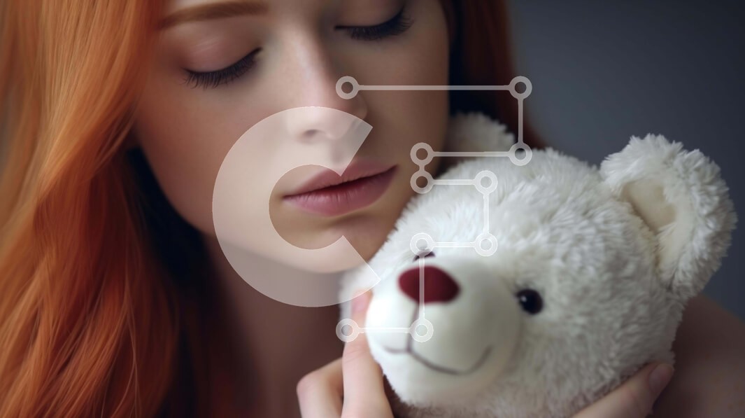 Υπάρχει δυνατότητα προσωποποίησης με δική σας φωτογραφία και προσαρμογής διαστάσεων κατόπιν παραγγελίας. Το συγεκεριμενο puzzle παρουσιαζει Η εικόνα απεικονίζει μια νεαρή γυναίκα με κόκκινα μαλλιά να κρατά ένα πορτοκαλί αρκουδάκι. Τα μάτια της κοπέλας είναι κλειστά, υποδηλώνοντας ότι δεν κοιτάζει τίποτα στην εικόνα. Μπορεί να κρατάει το λούτρινο ζωάκι για κάποιο λόγο ή μπορεί απλώς να είναι μέρος της καθημερινότητ