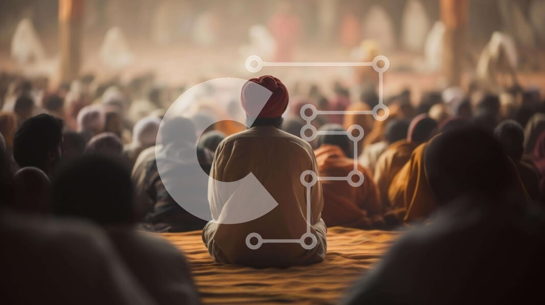 Υπάρχει δυνατότητα προσωποποίησης με δική σας φωτογραφία και προσαρμογής διαστάσεων κατόπιν παραγγελίας. Το συγεκεριμενο puzzle παρουσιαζει Αυτή η εικόνα απαθανατίζει έναν άνδρα να κάθεται στο πάτωμα μπροστά σε κοινό, με πολλούς άλλους ανθρώπους να τον περιβάλλουν. Ο άνδρας φορά εμφανώς ένα κόκκινο τουρμπάνι, υποδηλώνοντας τη συμμετοχή του σε μια θρησκευτική ή πνευματική δραστηριότητα. Φαίνεται ότι όλα τα άτομα εί