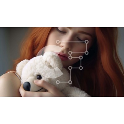 Υπάρχει δυνατότητα προσωποποίησης με δική σας φωτογραφία και προσαρμογής διαστάσεων κατόπιν παραγγελίας. Το συγεκεριμενο puzzle παρουσιαζει Αυτή η εικόνα παρουσιάζει μια νεαρή γυναίκα με κόκκινα μαλλιά που κρατά ένα αξιολάτρευτο λευκό αρκουδάκι. Τα μάτια της γυναίκας είναι κλειστά, υποδηλώνοντας μια στιγμή ξεκούρασης και άνεσης. Τα χέρια της είναι ενωμένα μπροστά στο πρόσωπό της, υποδηλώνοντας μια αίσθηση στοργής