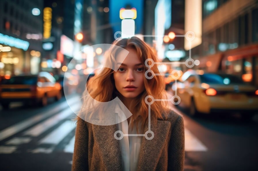 Υπάρχει δυνατότητα προσωποποίησης με δική σας φωτογραφία και προσαρμογής διαστάσεων κατόπιν παραγγελίας. Το συγεκεριμενο puzzle παρουσιαζει Αυτή η εικόνα παρουσιάζει μια νεαρή γυναίκα να στέκεται σε έναν δρόμο της πόλης τη νύχτα, περιτριγυρισμένη από ψηλά κτίρια και φώτα του δρόμου. Φοράει ένα καφέ παλτό και έχει μια σοβαρή έκφραση στο πρόσωπό της καθώς κοιτάζει κατευθείαν την κάμερα. Το φόντο είναι απασχολημένο μ