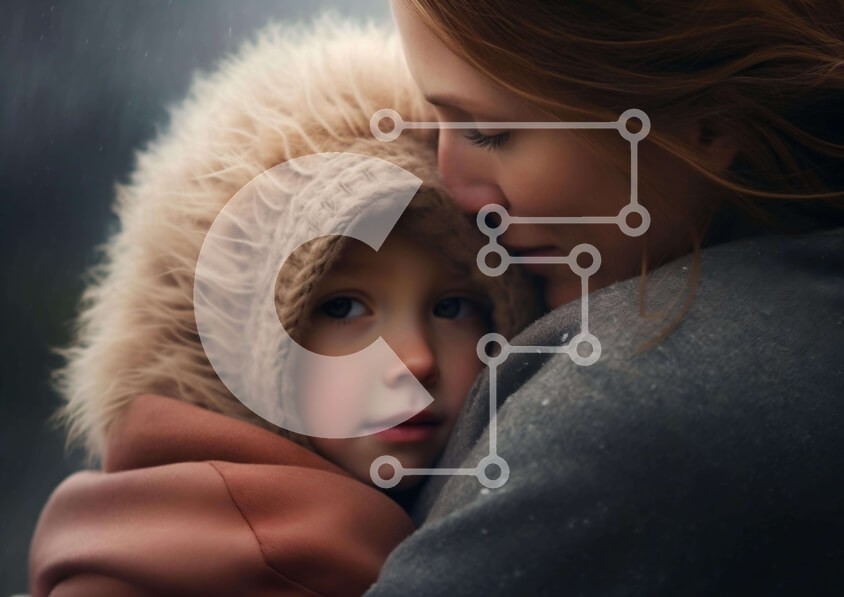 Υπάρχει δυνατότητα προσωποποίησης με δική σας φωτογραφία και προσαρμογής διαστάσεων κατόπιν παραγγελίας. Το συγεκεριμενο puzzle παρουσιαζει Η εικόνα δείχνει μια συγκινητική στιγμή ανάμεσα σε μια μητέρα και ένα παιδί στη βροχή. Η γυναίκα φοράει ένα γούνινο παλτό εμπνευσμένο από ζώα, παρέχοντας ζεστασιά και θαλπωρή. Το παιδί είναι φωλιασμένο στο στήθος της γυναίκας, τονίζοντας την εγγύτητα μεταξύ τους. Ένα μοναδικό