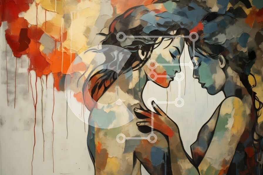 Υπάρχει δυνατότητα προσωποποίησης με δική σας φωτογραφία και προσαρμογής διαστάσεων κατόπιν παραγγελίας. Το συγεκεριμενο puzzle παρουσιαζει Αυτή η εικόνα απεικονίζει δύο γυναίκες να αγκαλιάζουν η μία την άλλη σε μια στενή και οικεία αγκαλιά. Το φόντο της εικόνας είναι ζωντανό και πολύχρωμο, με πιτσιλίσματα και σταγόνες μπογιάς που προσθέτουν στην καλλιτεχνική αίσθηση. Η συνολική διάθεση της εικόνας είναι ζεστασιά,