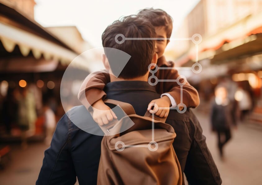 Υπάρχει δυνατότητα προσωποποίησης με δική σας φωτογραφία και προσαρμογής διαστάσεων κατόπιν παραγγελίας. Το συγεκεριμενο puzzle παρουσιαζει Η εικόνα απεικονίζει έναν άνδρα να κρατά τον μικρό του γιο στην πλάτη του ενώ περπατούσε σε μια αστική περιοχή. Το αγόρι είναι πιθανό να είναι μικρότερο των 5 ετών, γεγονός που μπορεί να υποδηλώνει ότι η σχέση μεταξύ πατέρα και γιου εξακολουθεί να αναπτύσσεται. Υπάρχουν πολλά