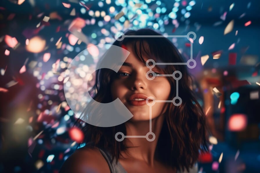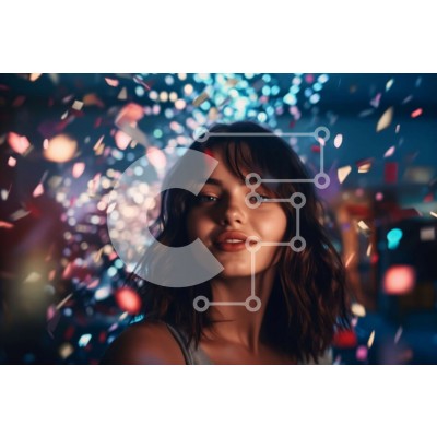 Υπάρχει δυνατότητα προσωποποίησης με δική σας φωτογραφία και προσαρμογής διαστάσεων κατόπιν παραγγελίας. Το συγεκεριμενο puzzle παρουσιαζει Αυτή η εικόνα παρουσιάζει μια νεαρή γυναίκα να στέκεται μπροστά σε ένα πολύχρωμο φόντο με κομφετί να πέφτουν γύρω της. Έχει μακριά, σκούρα μαλλιά και φοράει λευκό τοπ με μπλε τζιν. Κοιτάζει κατευθείαν την κάμερα με ένα ελαφρύ χαμόγελο στα χείλη, αναδίδοντας μια χαρούμενη και ε