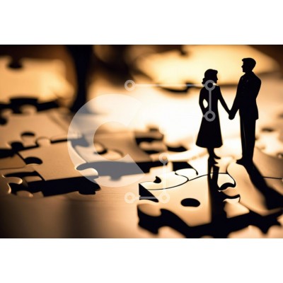 Υπάρχει δυνατότητα προσωποποίησης με δική σας φωτογραφία και προσαρμογής διαστάσεων κατόπιν παραγγελίας. Το συγεκεριμενο puzzle παρουσιαζει Αυτή η εικόνα δείχνει ένα ζευγάρι που κρατιέται χέρι χέρι στη μέση πολλών κομματιών παζλ. Οι σιλουέτες ενός άνδρα και μιας γυναίκας φαίνονται να στέκονται ο ένας δίπλα στον άλλο, με τα χέρια τους να ακουμπούν ο ένας στους ώμους του άλλου. Η εικόνα αντιπροσωπεύει έναν ισχυρό δε