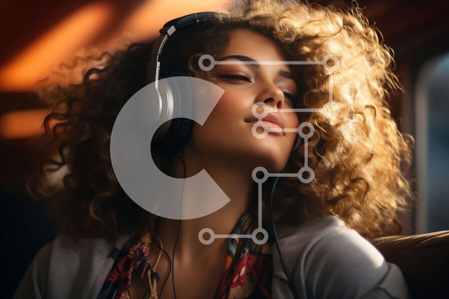 Υπάρχει δυνατότητα προσωποποίησης με δική σας φωτογραφία και προσαρμογής διαστάσεων κατόπιν παραγγελίας. Το συγεκεριμενο puzzle παρουσιαζει Αυτή η εικόνα απεικονίζει μια νεαρή γυναίκα με σγουρά μαλλιά που φοράει ακουστικά ενώ κάθεται σε έναν καναπέ σε ένα δωμάτιο με χαμηλό φωτισμό. Η ατμόσφαιρα είναι ζεστή και οικεία, ιδανική για χαλάρωση και απόλαυση μουσικής. Ο απαλός φωτισμός προσθέτει στη συνολική ατμόσφαιρα τ