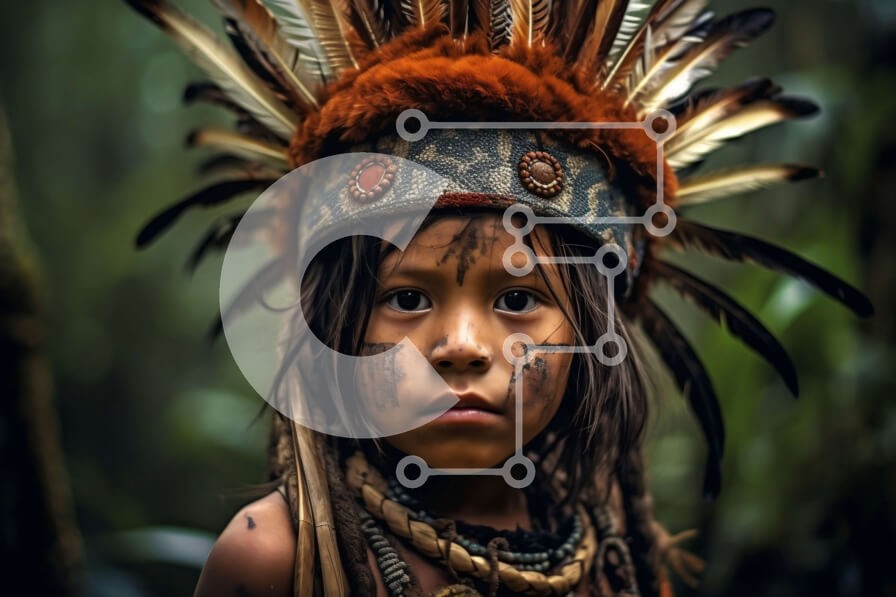 Υπάρχει δυνατότητα προσωποποίησης με δική σας φωτογραφία και προσαρμογής διαστάσεων κατόπιν παραγγελίας. Το συγεκεριμενο puzzle παρουσιαζει Αυτή η εικόνα παρουσιάζει ένα νεαρό αυτόχθονα αγόρι που φοράει παραδοσιακή ενδυμασία και κόμμωση. Το αγόρι φαίνεται να είναι από το τροπικό δάσος του Αμαζονίου, περιτριγυρισμένο από πλούσια βλάστηση. Η παραδοσιακή ενδυμασία είναι διακοσμημένη με έντονα χρώματα και περίπλοκα μο