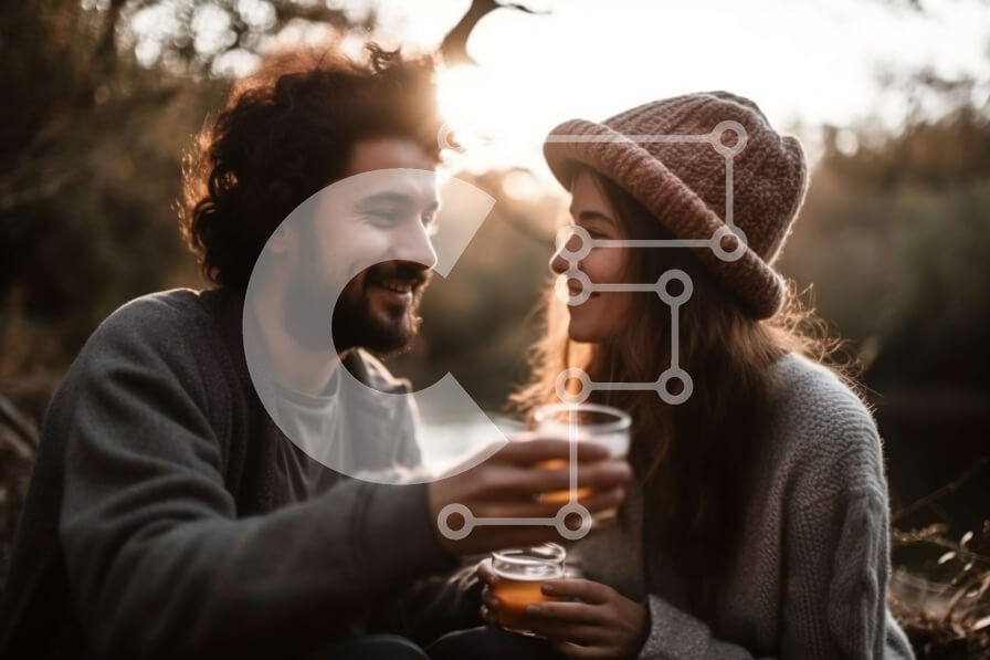 Υπάρχει δυνατότητα προσωποποίησης με δική σας φωτογραφία και προσαρμογής διαστάσεων κατόπιν παραγγελίας. Το συγεκεριμενο puzzle παρουσιαζει Αυτή η εικόνα παρουσιάζει ένα νεαρό ζευγάρι που κάθεται σε ένα κούτσουρο δίπλα σε ένα ποτάμι, απολαμβάνοντας ένα όμορφο ηλιοβασίλεμα. Πίνουν μπύρα και φαίνεται να είναι ευδιάθετοι, να γελούν και να απολαμβάνουν ο ένας την παρέα του άλλου. Τα ζωηρά χρώματα του ουρανού και το γα