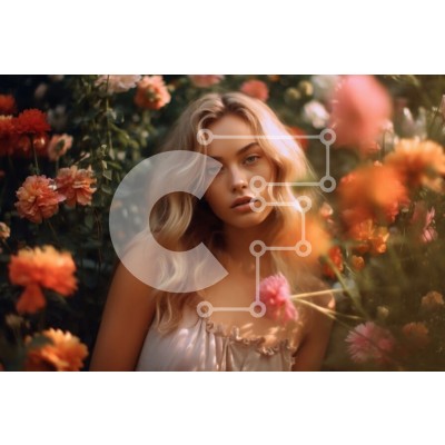 Υπάρχει δυνατότητα προσωποποίησης με δική σας φωτογραφία και προσαρμογής διαστάσεων κατόπιν παραγγελίας. Το συγεκεριμενο puzzle παρουσιαζει Αυτή η εικόνα παρουσιάζει μια νεαρή ξανθιά γυναίκα να στέκεται σε ένα χωράφι με λουλούδια. Φοράει ένα λευκό φόρεμα και έχει τα χέρια της στους γοφούς της. Το φόντο είναι μια απαλή κλίση ροζ και πορτοκαλί και ο ήλιος λάμπει πάνω της. Τα λουλούδια είναι σε πλήρη άνθιση, προσθέτο