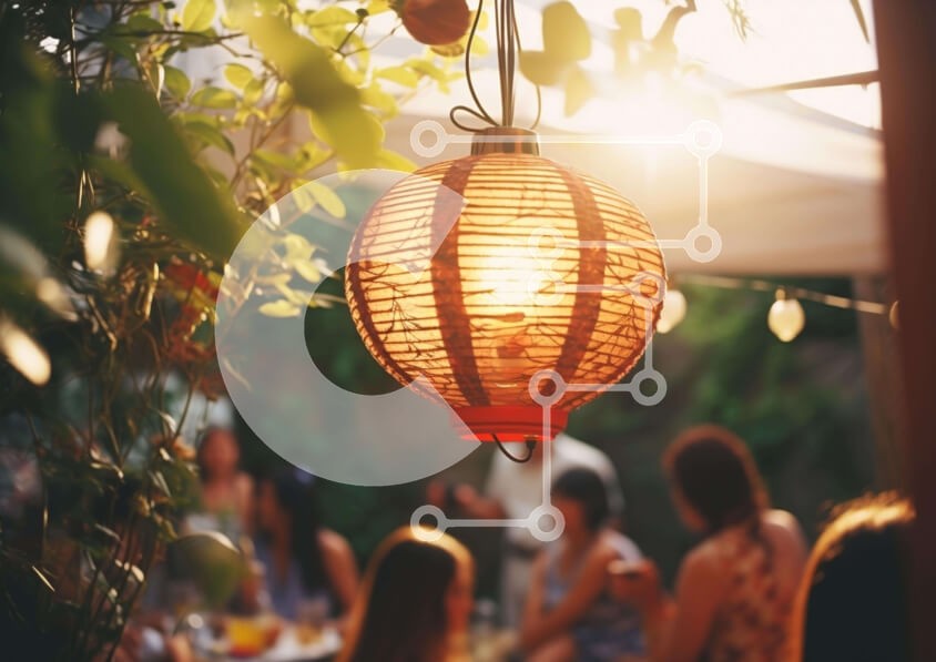 Υπάρχει δυνατότητα προσωποποίησης με δική σας φωτογραφία και προσαρμογής διαστάσεων κατόπιν παραγγελίας. Το συγεκεριμενο puzzle παρουσιαζει Η εικόνα απεικονίζει μια ομάδα ανθρώπων που κάθονται γύρω από μια υπαίθρια τραπεζαρία, με πολλά φανάρια να κρέμονται από την οροφή. Υπάρχουν πολλά τραπέζια και καρέκλες διάσπαρτα στην περιοχή, υποδηλώνοντας ότι η εκδήλωση πραγματοποιείται σε εξωτερικούς χώρους. Επιπλέον, φαίνε
