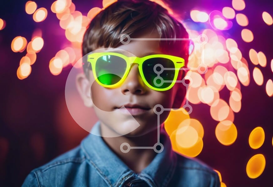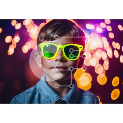 Υπάρχει δυνατότητα προσωποποίησης με δική σας φωτογραφία και προσαρμογής διαστάσεων κατόπιν παραγγελίας. Το συγεκεριμενο puzzle παρουσιαζει Αυτή η εικόνα παρουσιάζει ένα νεαρό αγόρι που φοράει έντονα κίτρινα γυαλιά ηλίου και στέκεται μπροστά σε πολύχρωμα φώτα. Φαίνεται να είναι ντυμένος για μια εκδήλωση ή πάρτι και μπορεί να συνοδεύεται από φίλους ή οικογένεια. Η ενασχόληση του αγοριού με την κάμερα υποδηλώνει ενδ
