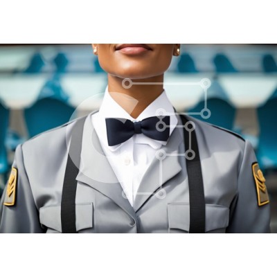 Υπάρχει δυνατότητα προσωποποίησης με δική σας φωτογραφία και προσαρμογής διαστάσεων κατόπιν παραγγελίας. Το συγεκεριμενο puzzle παρουσιαζει Αυτή η εικόνα παρουσιάζει μια κομψή γυναίκα με στολή, που φορά ένα παπιγιόν και τιράντες. Αιχμαλωτίζεται από πίσω, υποδηλώνοντας ότι είναι στραμμένη μακριά από τον θεατή. Το δωμάτιο είναι γεμάτο με καρέκλες, δίνοντας την εντύπωση ότι μπορεί να κάθεται. Αυτή η φωτογραφία προσθέ
