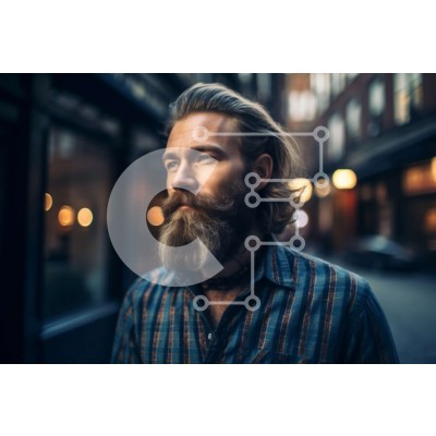 Υπάρχει δυνατότητα προσωποποίησης με δική σας φωτογραφία και προσαρμογής διαστάσεων κατόπιν παραγγελίας. Το συγεκεριμενο puzzle παρουσιαζει Ένας άντρας με μακριά γενειάδα και καρό πουκάμισο στέκεται σε έναν δρόμο της πόλης τη νύχτα, κοιτάζοντας μακριά. Ο άντρας εμφανίζεται στοχαστικός και ενδοσκοπικός, φωτισμένος από τα φώτα της πόλης. Πίσω του, τα κτίρια και τα φώτα του δρόμου δημιουργούν μια πολυσύχναστη αστική