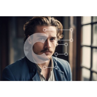 Υπάρχει δυνατότητα προσωποποίησης με δική σας φωτογραφία και προσαρμογής διαστάσεων κατόπιν παραγγελίας. Το συγεκεριμενο puzzle παρουσιαζει Αυτό είναι ένα πορτρέτο ενός άνδρα με μακριά μαλλιά και γένια, που φορά ένα μπλε σακάκι και λευκό πουκάμισο. Το φόντο είναι θολό και ο άντρας κοιτάζει μακριά, δίνοντας την εντύπωση βαθιάς σκέψης ή στοχασμού. Αυτή η εικόνα είναι ιδανική για έργα που απαιτούν έντονη ανδρική παρο