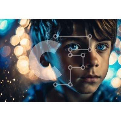 Υπάρχει δυνατότητα προσωποποίησης με δική σας φωτογραφία και προσαρμογής διαστάσεων κατόπιν παραγγελίας. Το συγεκεριμενο puzzle παρουσιαζει Αυτή η εικόνα παρουσιάζει ένα νεαρό αγόρι με λαμπερά μπλε μάτια να στέκεται μπροστά σε πολύχρωμα φώτα. Το πρόσωπο του αγοριού είναι ελαφρώς γερμένο προς την κάμερα, υποδηλώνοντας περιέργεια ή πιθανώς φόβο. Τα ζωντανά φώτα δημιουργούν ένα μαγευτικό σκηνικό, προσθέτοντας βάθος κ