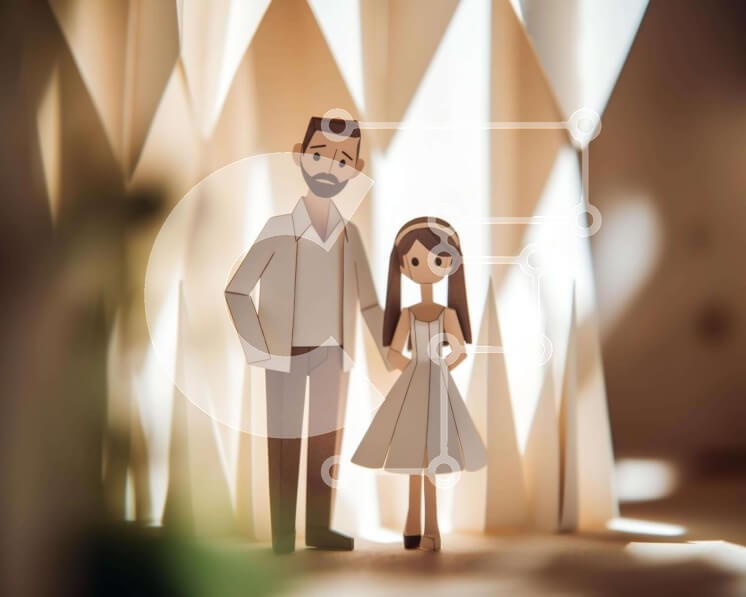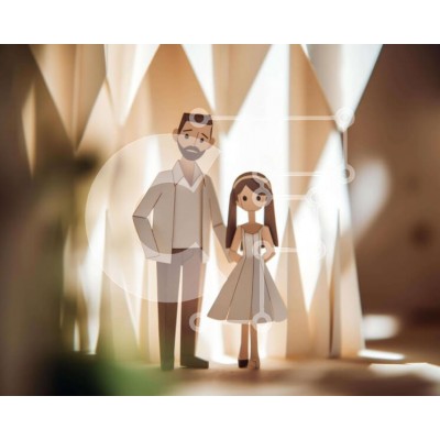 Υπάρχει δυνατότητα προσωποποίησης με δική σας φωτογραφία και προσαρμογής διαστάσεων κατόπιν παραγγελίας. Το συγεκεριμενο puzzle παρουσιαζει Αυτή η εικόνα παρουσιάζει ένα ζευγάρι με αποκοπή χαρτιού που στέκεται το ένα δίπλα στο άλλο. Είναι ντυμένοι με λευκή ενδυμασία, υποδηλώνοντας αρραβώνα ή πρόσφατο γάμο. Είναι πιθανό ότι αποτελούν μέρος μιας εικαστικής εγκατάστασης που δημιουργήθηκε για την ιδιαίτερη περίσταση τ