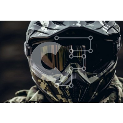 Υπάρχει δυνατότητα προσωποποίησης με δική σας φωτογραφία και προσαρμογής διαστάσεων κατόπιν παραγγελίας. Το συγεκεριμενο puzzle παρουσιαζει Η φωτογραφία απαθανατίζει έναν άνδρα ντυμένο με χακί ενδυμασία παραλλαγής, φορώντας κράνος και γυαλιά τύπου στρατού. Το κεφάλι του είναι γερμένο προς την κάμερα, δείχνοντας το προφίλ του. Τα γυαλιά ηλίου στο πρόσωπό του υποδηλώνουν προστασία και ετοιμότητα για υπαίθριες ασχολί