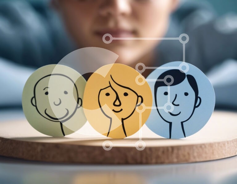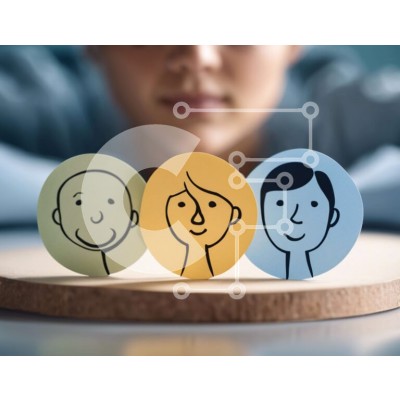 Υπάρχει δυνατότητα προσωποποίησης με δική σας φωτογραφία και προσαρμογής διαστάσεων κατόπιν παραγγελίας. Το συγεκεριμενο puzzle παρουσιαζει Αυτή η εικόνα δείχνει μια γυναίκα να κάθεται μπροστά από τρεις χάρτινες εγκοπές που απεικονίζουν τα πρόσωπα δύο ανδρών και μιας γυναίκας. Οι εγκοπές τοποθετούνται σε μια ξύλινη σανίδα κοπής σε σχήμα οβάλ, υποδηλώνοντας τη χρήση τους για την αναπαράσταση διαφορετικών τύπων ανθρ