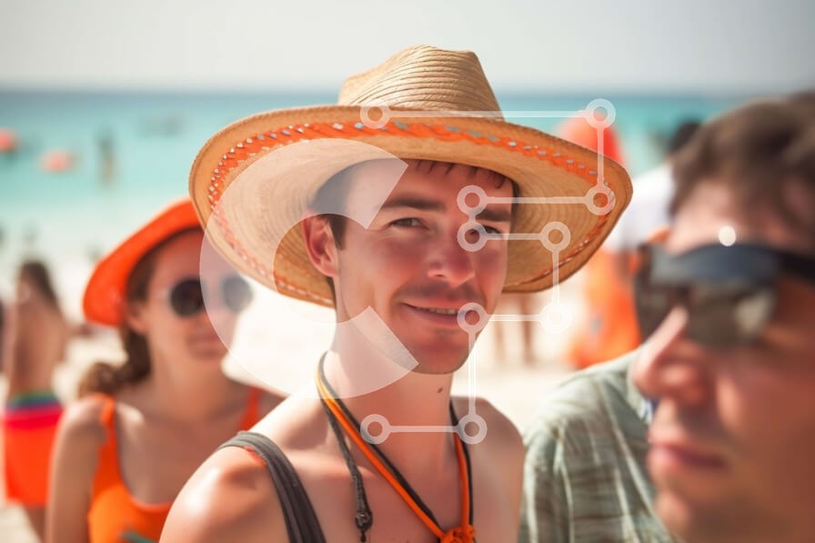 Υπάρχει δυνατότητα προσωποποίησης με δική σας φωτογραφία και προσαρμογής διαστάσεων κατόπιν παραγγελίας. Το συγεκεριμενο puzzle παρουσιαζει Αυτή η στοκ φωτογραφία παρουσιάζει μια ομάδα ανθρώπων που στέκονται στην παραλία φορώντας γυαλιά ηλίου και καπέλα. Φαίνονται χαρούμενοι και χαλαροί, απολαμβάνοντας τον ζεστό ήλιο και το αεράκι του ωκεανού. Η εικόνα είναι ιδανική για σχέδια με θέμα το καλοκαίρι, ταξιδιωτικά φυλ