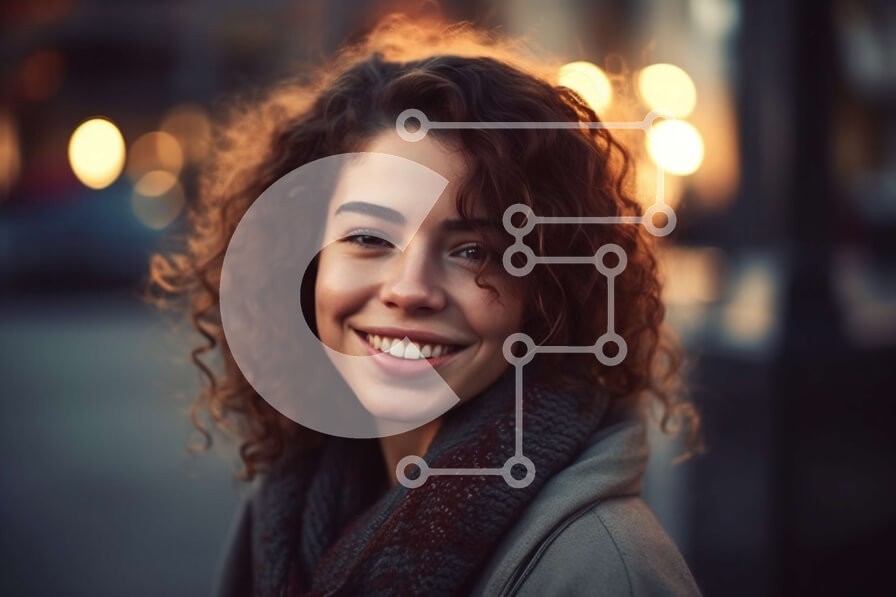 Υπάρχει δυνατότητα προσωποποίησης με δική σας φωτογραφία και προσαρμογής διαστάσεων κατόπιν παραγγελίας. Το συγεκεριμενο puzzle παρουσιαζει Αυτή η εικόνα παρουσιάζει μια νεαρή γυναίκα με σγουρά μαλλιά, που φορά ένα μαντήλι και χαμογελά ενώ στέκεται σε έναν δρόμο της πόλης το σούρουπο. Το απαλό φως του ήλιου που δύει έριξε μια ζεστή λάμψη στη σκηνή, τονίζοντας τα κτίρια και δημιουργώντας μεγάλες σκιές στο πεζοδρόμι