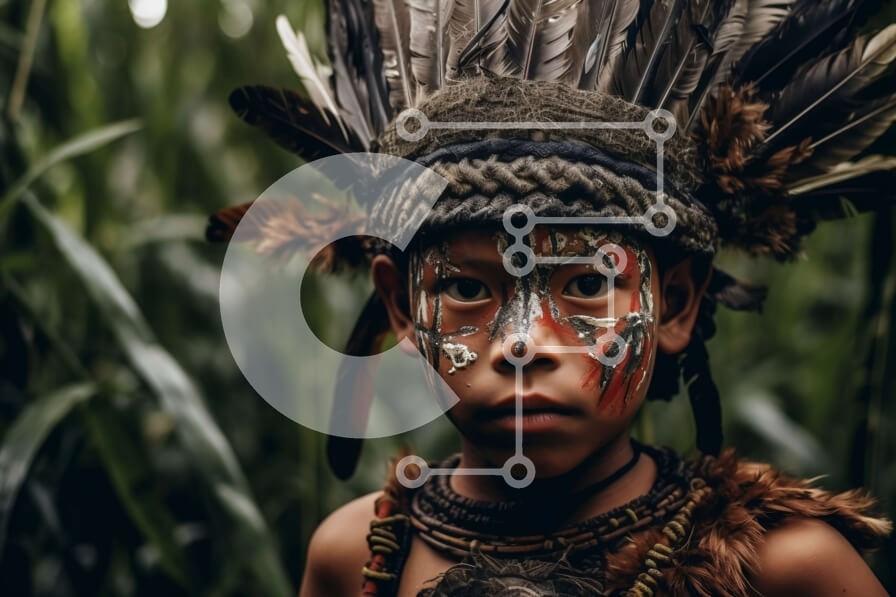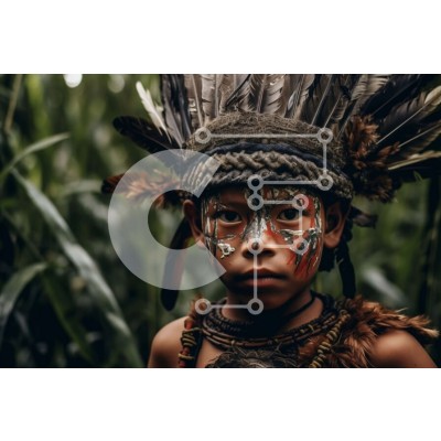 Υπάρχει δυνατότητα προσωποποίησης με δική σας φωτογραφία και προσαρμογής διαστάσεων κατόπιν παραγγελίας. Το συγεκεριμενο puzzle παρουσιαζει Αυτή η εικόνα παρουσιάζει ένα νεαρό αγόρι που στέκεται σε μια πυκνή ζούγκλα, φορώντας μια παραδοσιακή ιθαγενή κόμμωση και μπογιά προσώπου. Τα ψηλά δέντρα στο βάθος συμβάλλουν στο καταπράσινο και τροπικό περιβάλλον. Το αγόρι εμφανίζεται σίγουρο και περήφανο, αντιπροσωπεύοντας τ
