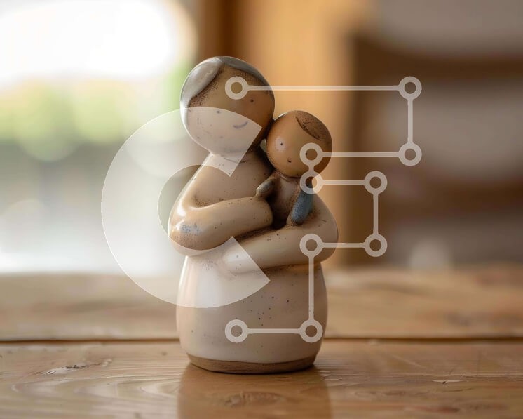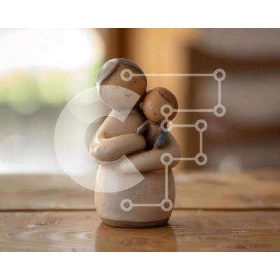 Υπάρχει δυνατότητα προσωποποίησης με δική σας φωτογραφία και προσαρμογής διαστάσεων κατόπιν παραγγελίας. Το συγεκεριμενο puzzle παρουσιαζει Η εικόνα παρουσιάζει ένα μικρό ειδώλιο μιας ηλικιωμένης γυναίκας που κρατά το μικρό της παιδί σε ένα ξύλινο τραπέζι. Το ειδώλιο συμβολίζει οικογενειακούς δεσμούς και σημαντικές σχέσεις. Ένα μοναδικό puzzle που συνδυάζει ποιότητα, αισθητική και εμπειρία. Υλικό: Κατασκευασμένο