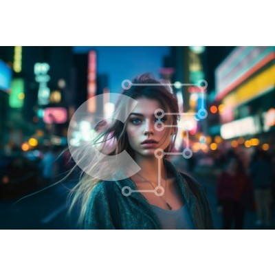 Υπάρχει δυνατότητα προσωποποίησης με δική σας φωτογραφία και προσαρμογής διαστάσεων κατόπιν παραγγελίας. Το συγεκεριμενο puzzle παρουσιαζει Αυτή η εικόνα είναι μιας νεαρής γυναίκας που στέκεται σε έναν πολυσύχναστο δρόμο της πόλης τη νύχτα, περιτριγυρισμένη από ψηλά κτίρια και φώτα νέον. Κοιτάζει κατευθείαν την κάμερα με μια σοβαρή έκφραση στο πρόσωπό της. Έχει μακριά, ίσια μαλλιά και φοράει μαύρο σακάκι και σκισμ
